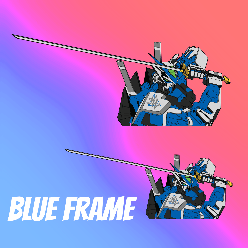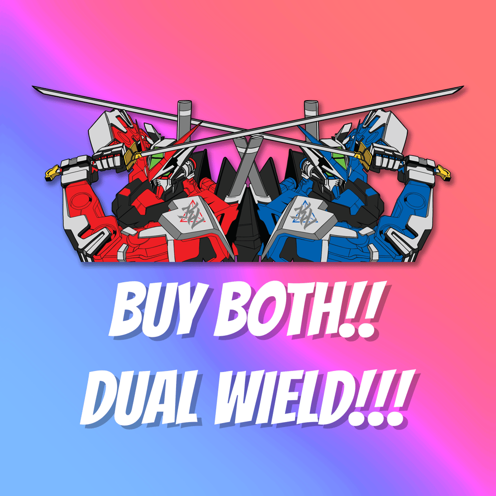 Gundam Astray Red Frame and Blue Frame Peeker Sticker. Sold Individually.