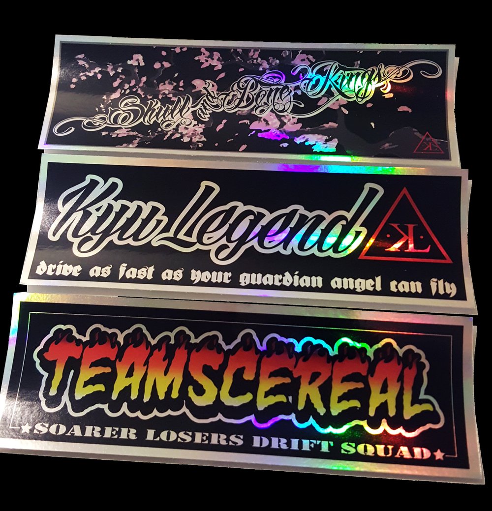 Ultra High Quality Print around 8.6 by 2.9 inches on OIL SLICK reflective / rainbow vinyl.
